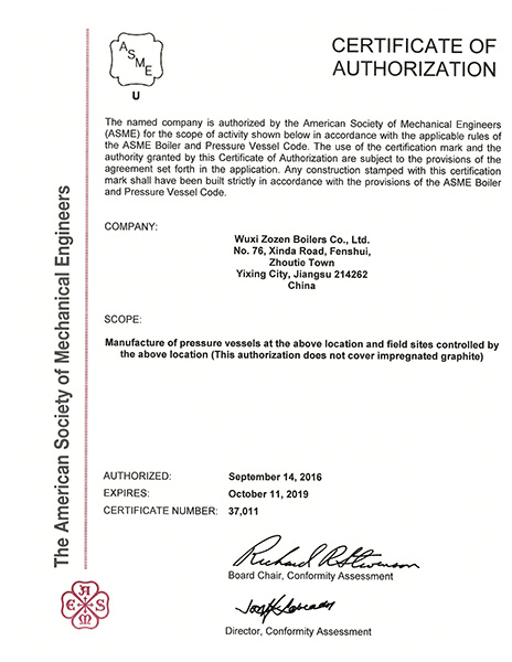 A級鍋爐制造許可證